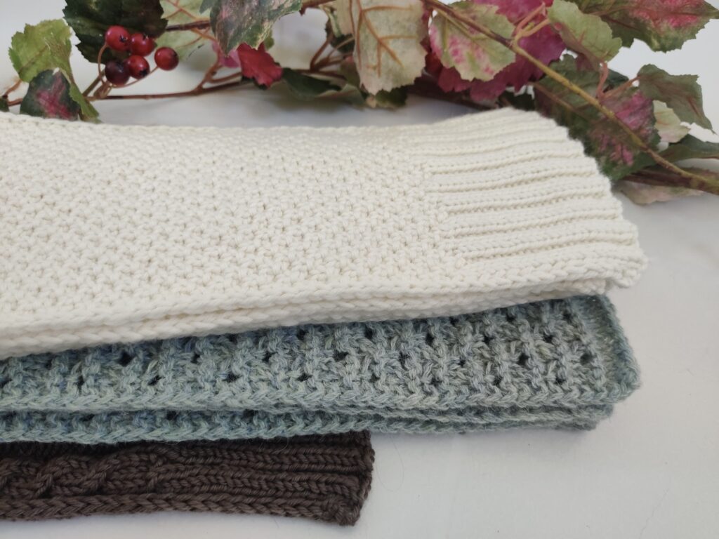 Elles sont réalisées en laine mérinos ou en laine shetland. Les laines que nous utilisons sont biologiques et certifiées GOTS, Global Organic Textile Standard. Ce label établit l’absence de résidus nocifs dans la laine et dans les teintures employées. Il garantit aussi les meilleures conditions pour les animaux, les travailleurs et l’environnement.